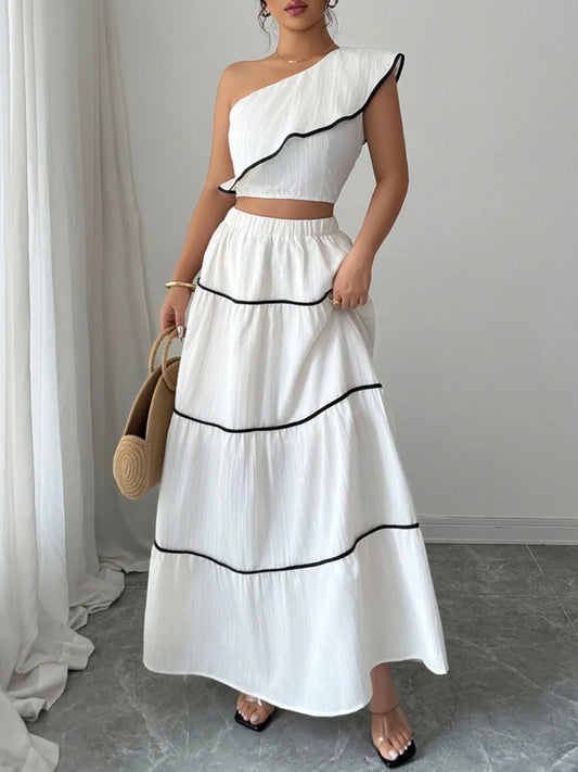 Laura - Set Asimétrico de Top con Volantes y Falda