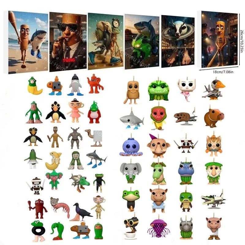 24 Piezas de la Leyenda: Cada día, abre una ventanita y encuentra un exclusivo colgante de acrílico 2D con una figura única inspirada en el meme del Brainrot Italiano. ¡Colecciona al tiburón con zapatillas, al cocodrilo bombardero, al palo de madera y más!